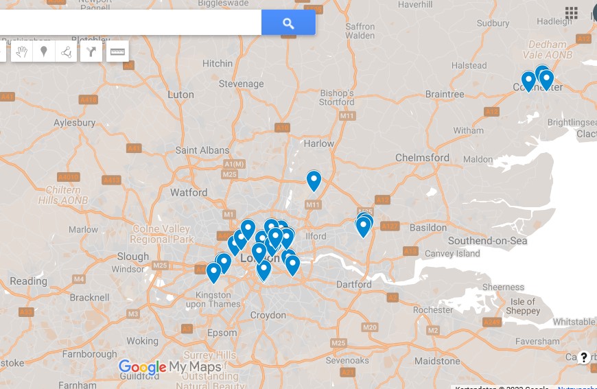 The map below shows more or less roughly the locations where the interviews took place. It is not conclusive as to where people are actually from, but gives some idea of my destinations these past three months. I don’t know how many hours I spent on public transport, but, apart from the Metropolitan line, I think I have travelled on every tube line and with most train providers. In any case, TfL profits greatly from this research.